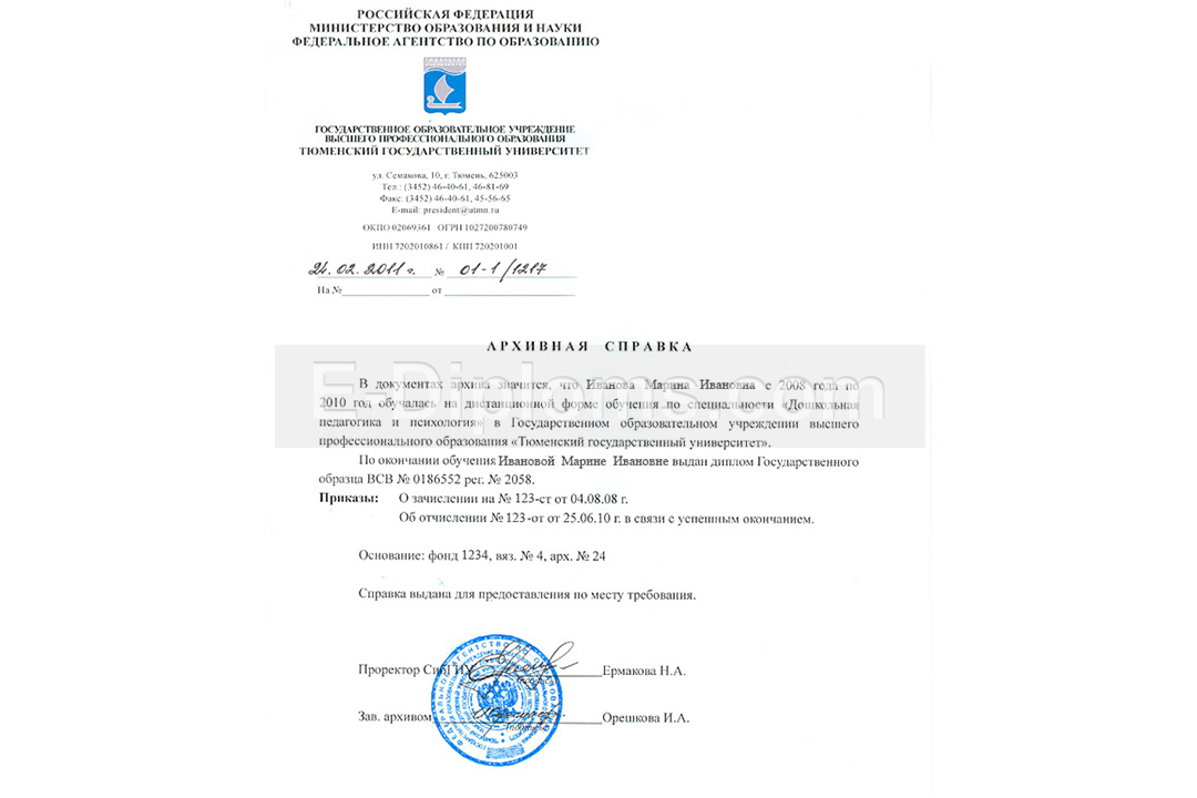 Архивная справка об окончании вуза или ссуза