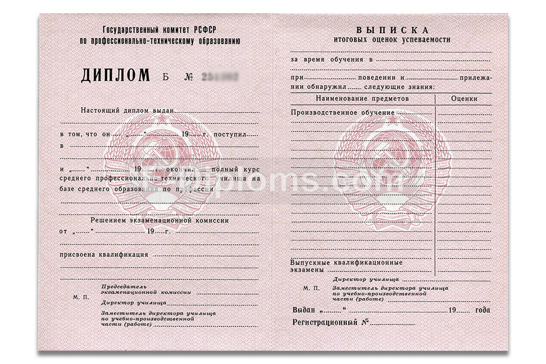Диплом ПТУ о среднем образовании с 2014 по 2025 год