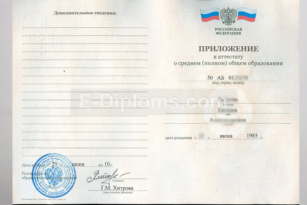Купить приложение к аттестату